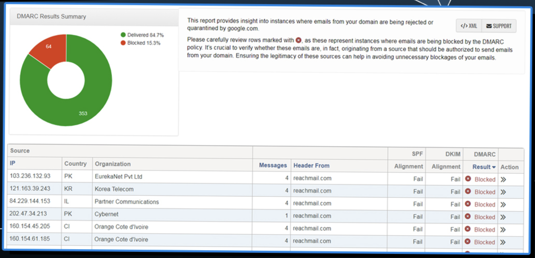 DMARC report analysis
